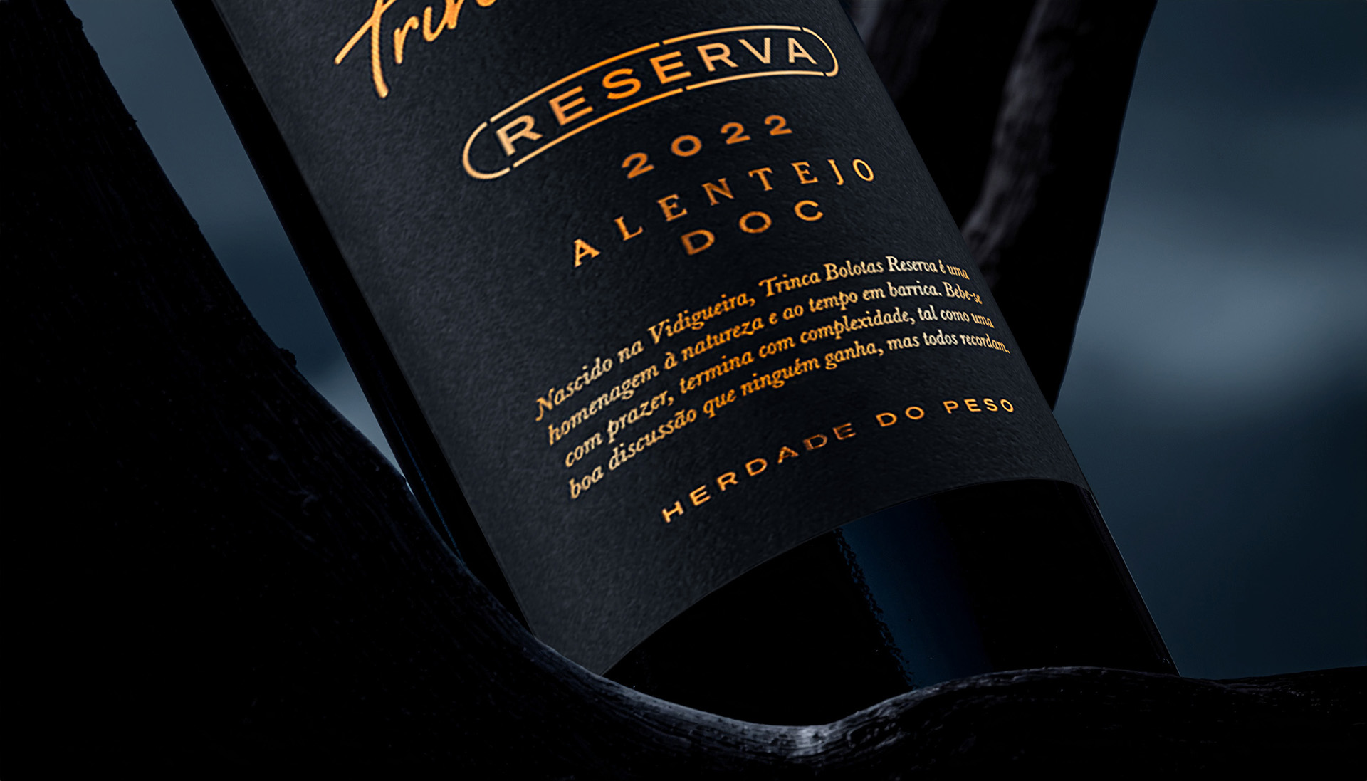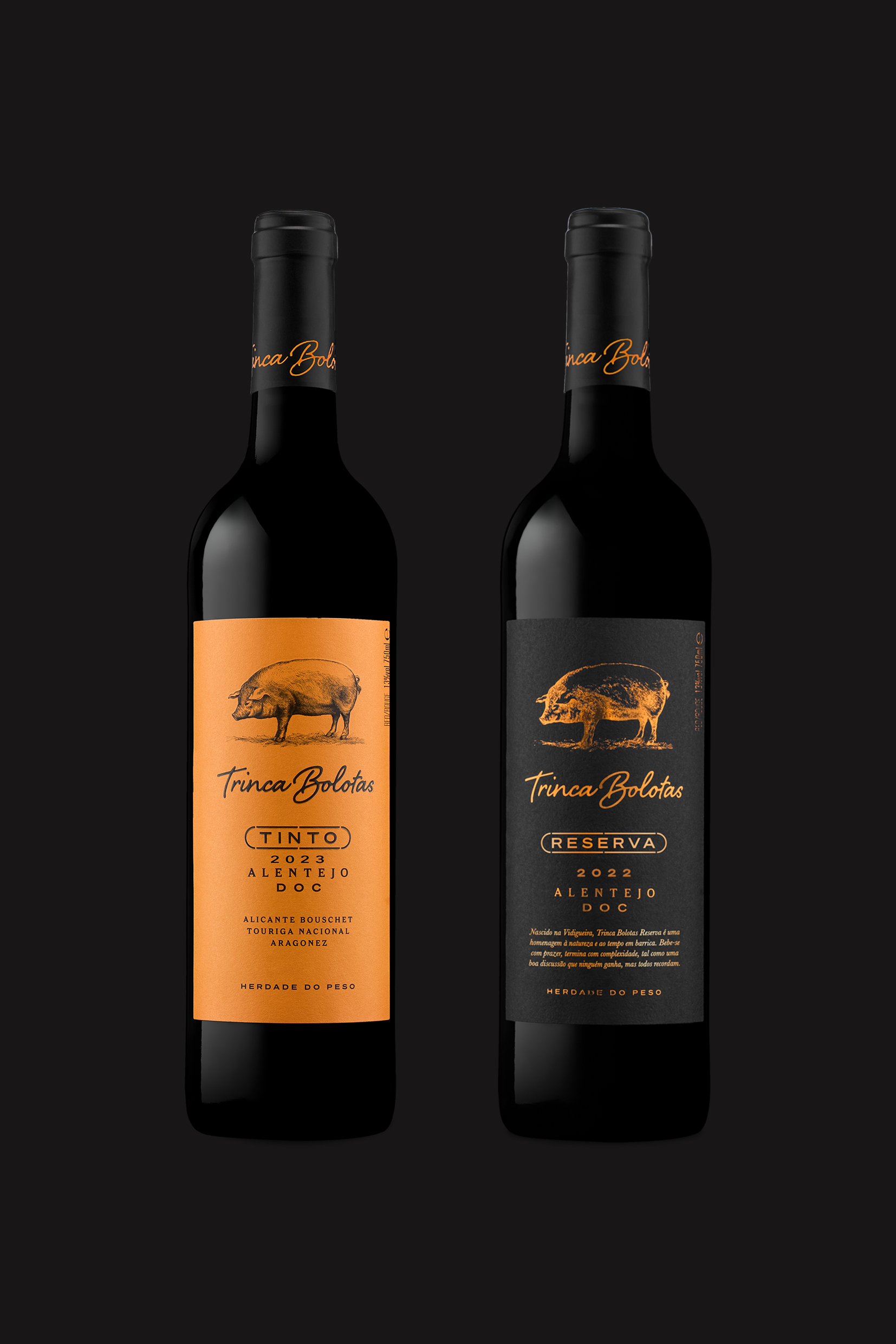 By inverting the colour scheme, we embraced the visual language of premium wines while keeping the familiar warmth that defines Trinca Bolotas. The orange foil becomes a bridge between past and present, a symbol of continuity wrapped in evolution — a reminder of the brand’s humble roots, its connection to the Alentejo landscape, and a confident statement of its elevated status. The result is a label that feels timeless, grounded, and unmistakably Trinca Bolotas — only more so.