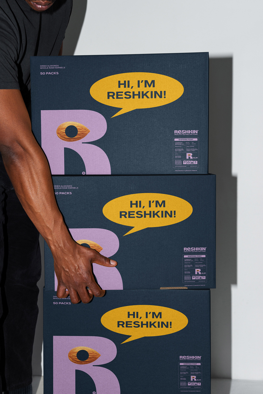 - Keywords: Reshkin, Nuts Packaging, Branding, Identity Design, Food Packaging, Minimalist Design, Monochrome Packaging, Clean Aesthetic, Natural Products, FMCG Branding, Premium Packaging, Modern Brand Identity, Sustainable Packaging, Visual Identity, Typography Based Design, Recyclable Materials, Kraft Paper Packaging