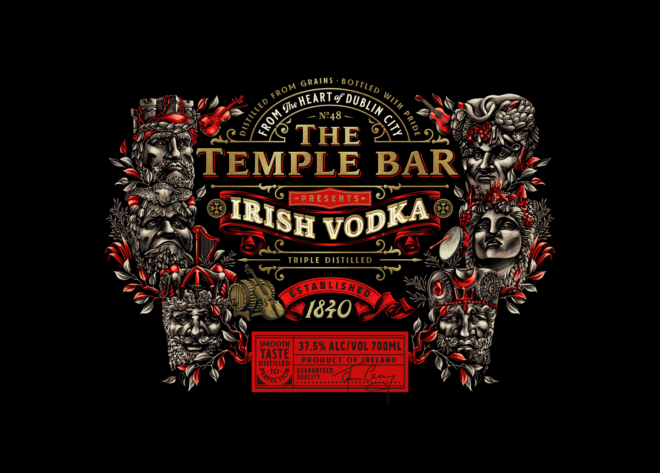 Widakk Design Studio Gives The Temple Bar Irish Vodka a Myth Led Identity Rooted in Dublin