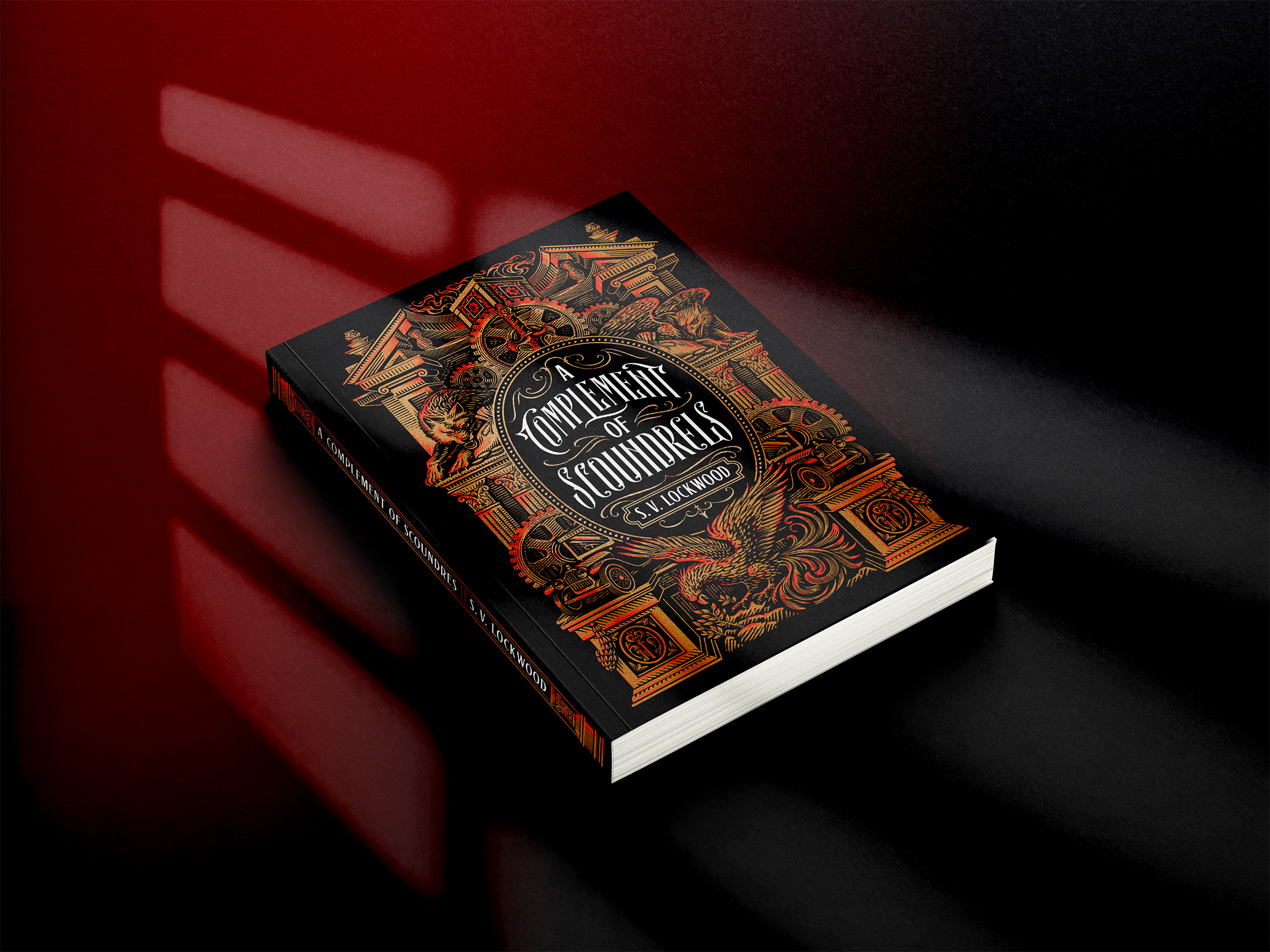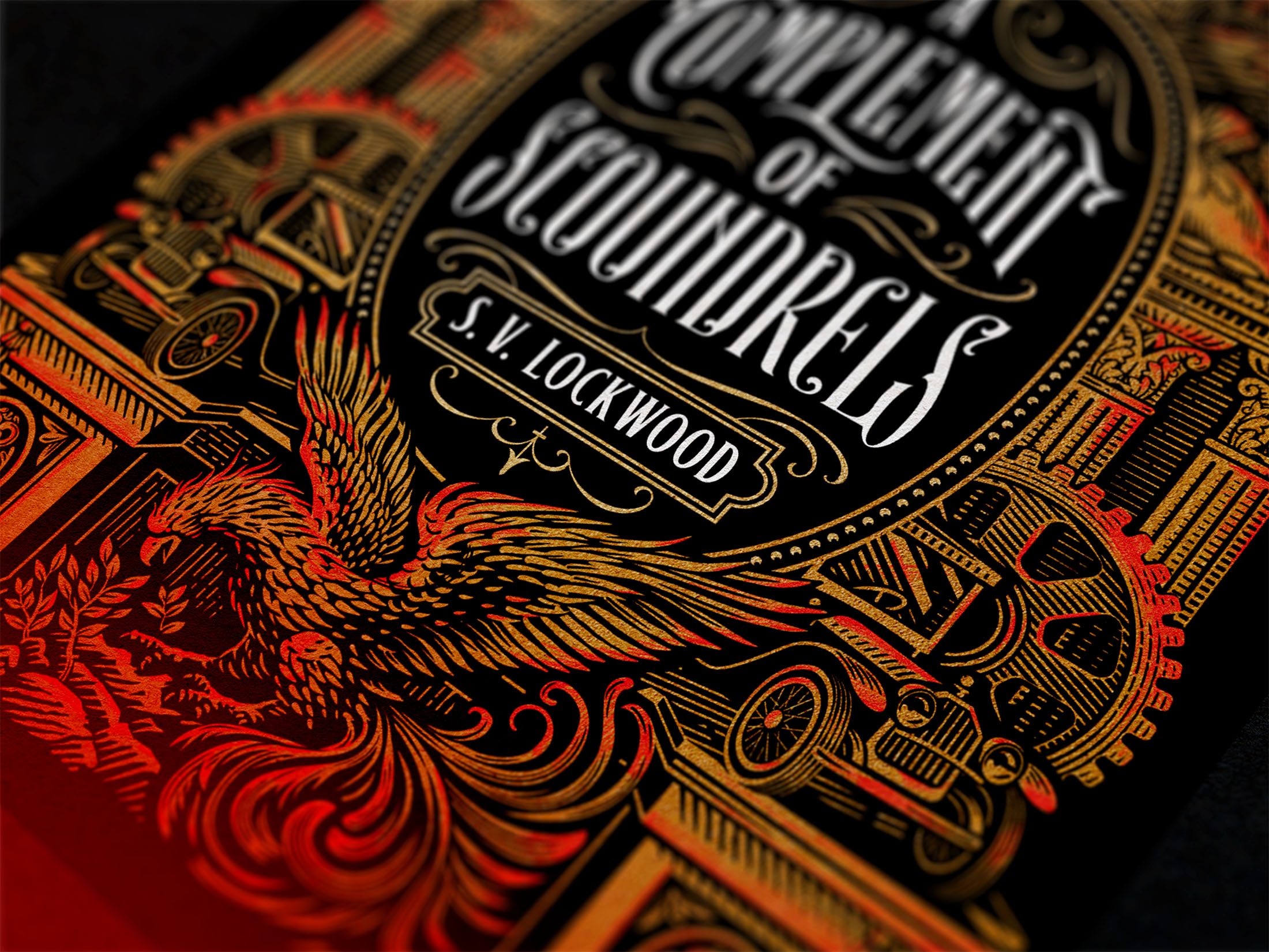 Book cover design for “A Complement of Scoundrels” written by S.V. Lockwood. The book will be published by Bindery Books and released in September 2026. Right now it’s available for pre-order.