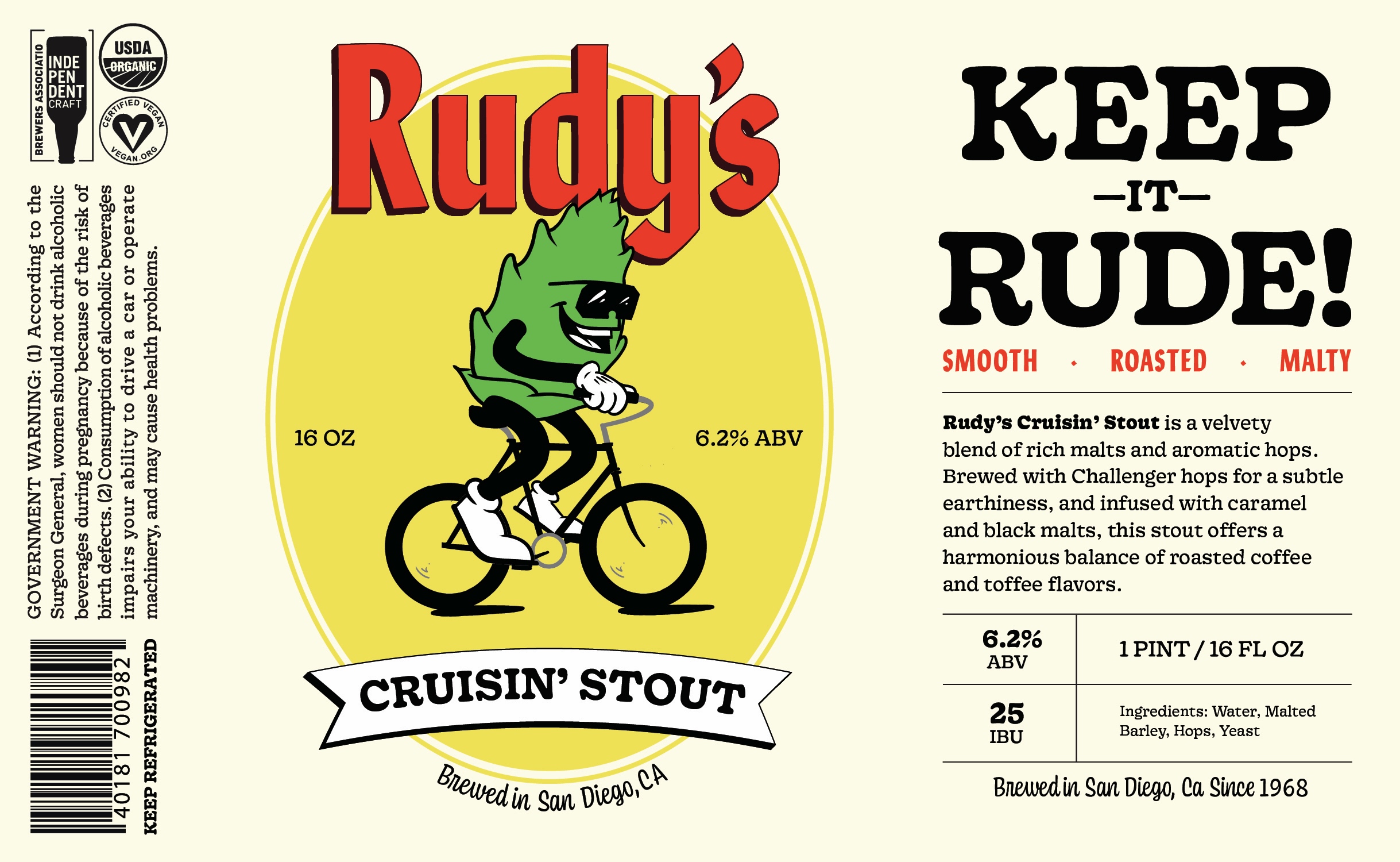Rudy’s is a craft beer brand shaped by the extreme energy of Southern California’s outdoor sports scene and the rhythm, resilience, and tenacity of UK Rude Boy culture. It is grounded in the idea that beer, sport, and music have always brought people together, especially those who are driven by creativity, grit, and a “make something from nothing” mentality.